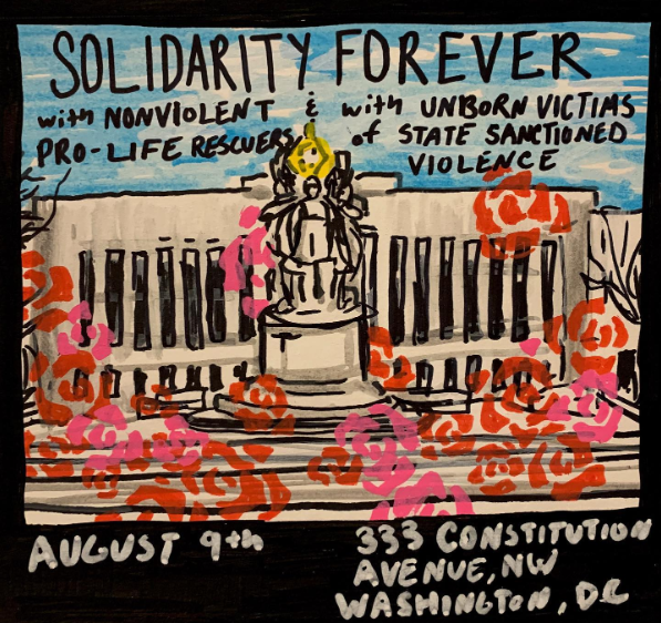 Express our solidarity with incarcerated Rescuers with incarcerated Rescuers through vigils, financial aid, letters, amplifying their content, and advocating for them with State and National legislators.